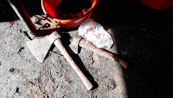 Eləcə də fermanın ərazisində ətrafa səpələnmiş çoxlu miqdarda köhnə at sümükləri (kəllə sümüyü, ön və arxa ətraf sümükləri, qabırğa və digər skeletlər) aşkar edilmişdir. Həmçinin köhnə quşçuluq fermasında kəsim üçün primitiv quraşdırılmış müxtəlif alət və ləvazimatlar (3 ədəd balta, 6 ədəd bıçaq, 2 ədəd primitiv quraşdırılmış tal, ətləri asmaq üçün qarmaqlar, 1 ədəd işıq generatoru, 1 ədəd bıçaq itiləmək üçün dəzgah, çoxlu miqdarda laxtalanmış qan gölməçələri) antisanitar vəziyyətdə aşkar olunmuşdur.