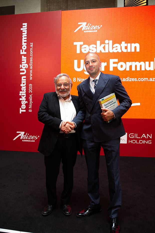 İtsxak Adizes bazarda lider olmağın, effektiv menecment sisteminin qurulması, uğurlu idarəetmə vasitələrinin tətbiqi üzrə innovativ yanaşma kimi şirkət inkişafında əhəmiyyətli rol oynayan mövzulardan danışıb. O, çıxışında fərqli insanları bir araya gətirərək onlardan güclü komanda yaratmağın effektivliyini də vurğulayıb.