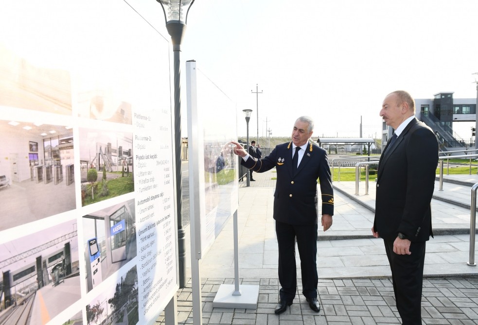 Dövlətimizin başçısı Pirşağı stansiyasında Sabunçu-Pirşağı xəttinin rəmzi açılışını bildirən lenti kəsdi və stansiya ilə tanış oldu.