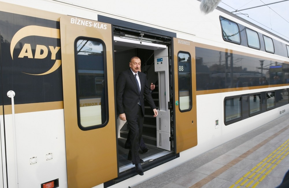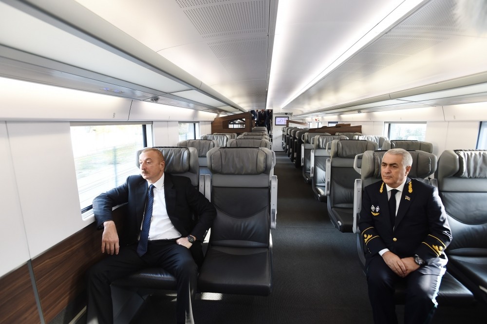 Dəmir yollarının yenidən qurulması istiqamətində çox böyük işlər görülüb. Mən artıq bu rəqəmləri səsləndirmişəm. Dünya miqyasında ən mötəbər beynəlxalq təşkilatlardan biri olan Davos Dünya İqtisadi Forumu Azərbaycanda dəmir yollarının keyfiyyəti ilə bağlı hesabatda göstərib ki, Azərbaycan dəmir yollarının səmərəliliyi baxımından dünyada 12-ci yerdədir, dəmir yollarının keyfiyyətinə görə 34-cü yerdədir. Bütün bunları son illər ərzində biz həll etmişik. Dəmir yollarının abadlaşdırılması, qurulması, dəmir yolu xidmətlərinin təkmilləşdirilməsi istiqamətində son illər ərzində, xüsusilə Cavid Qurbanovu mən bu vəzifəyə təyin edəndən sonra böyük irəliləyiş var. Həm Azərbaycan artıq beynəlxalq nəqliyyat mərkəzlərinin birinə çevrilib, Bakı-Tbilisi-Qars dəmir yolu istifadəyə verilib, Şimal-Cənub nəqliyyat dəhlizi işləyir, yükdaşımalar kəskin artır, eyni zamanda, ölkə daxilində infrastruktur təzələnir, İsveçrə istehsalı olan yeni müasir “Ştadler” vaqonları alınıb. Hesab edirəm ki, bu vaqonlar, dünya miqyasında ən gözəl və təhlükəsiz vaqonlardır.