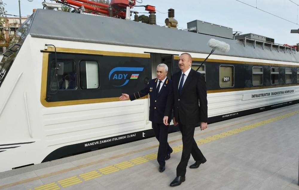 Bakı Dəmir Yolu Vağzalına gələn Prezident İlham Əliyevə burada “Defektoskop” infrastruktur-diaqnostika kompleksi barədə məlumat verildi.