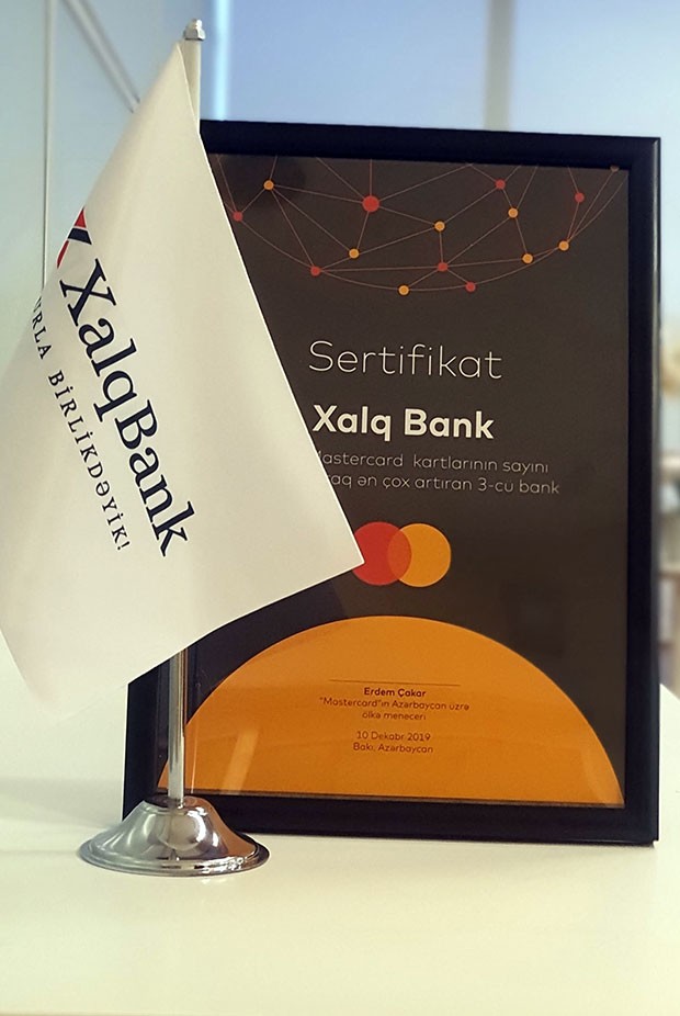 (®) Xalq Bank Azərbaycanda MasterCard qlobal ödəniş sisteminin debit kartların sayını ən çox artıran üç bankdan biridir. Bununla bağlı 10 dekabr tarixdə JW Marriott Absheron hotelində 2019-cu ilin yekunlarına həsr olunmuş tədbirdə Bank MasterCard tərəfindən xüsusi sertifikatla təltif edilib.