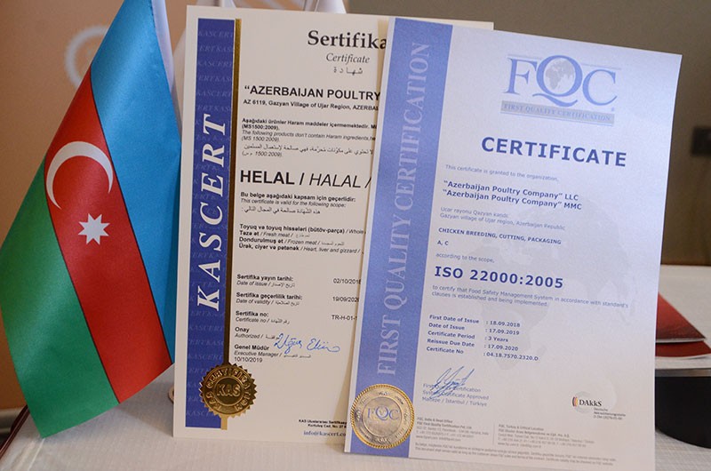 Ötən həftə “Holiday İnn” otelində Azerbaijan Poultry Şirkətinin (APC) istehsal etdiyi “Mərcan” quş əti və quş əti məhsullarına verilən “Halallıq” və “İSO 22000” sertifikatlarının təqdimat mərasimi keçirilib.