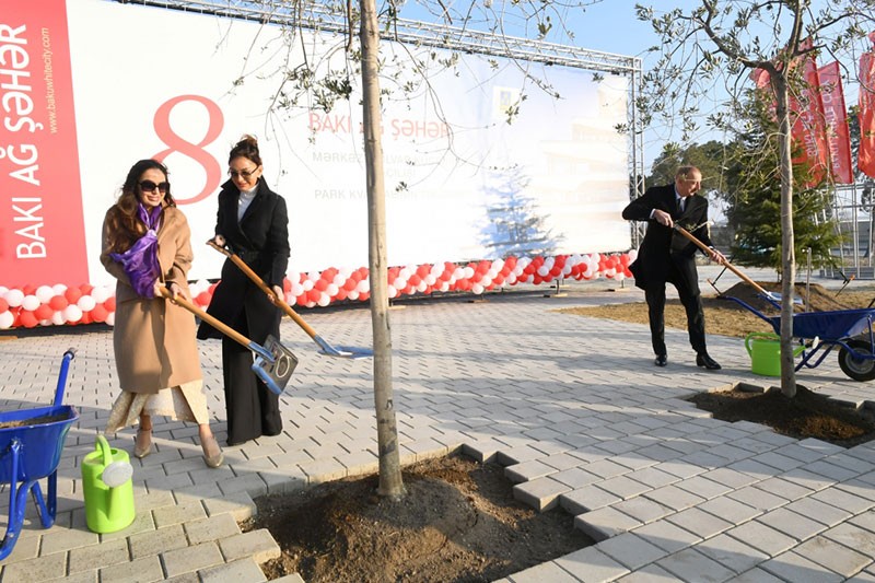 Dövlətimizin başçısı İlham Əliyev, birinci xanım Mehriban Əliyeva və Leyla Əliyeva buradakı parkda ağac əkməklə abadlaşdırma işlərinə start veriblər.