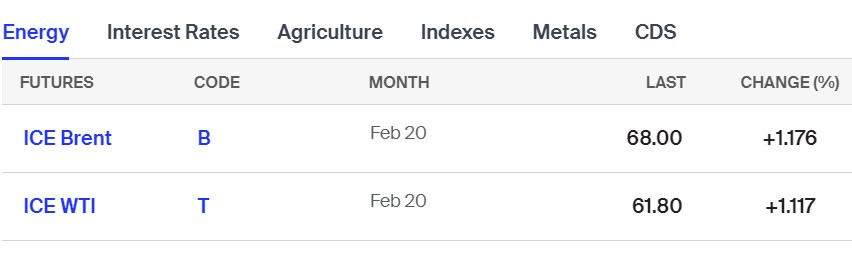 Bakı vaxtı ilə saat 10:40-da Brent nefti 1,2% bahalaşma ilə 68 dollardan, ABŞ xam nefti də 1,1% artımla 61.80 dollardan alıcı tapıb.