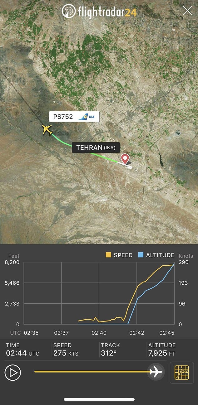 İran dövlət televiziyasının xəbərinə görə, Ukraynanın paytaxtı Kievə getmək üçün Tehrandakı "İmam Xomeyni" Beynəlxalq Hava limanından qalxan "Boeing 737" model sərnişin təyyarəsi qısa müddət sonra "texniki problemə görə" düşüb.