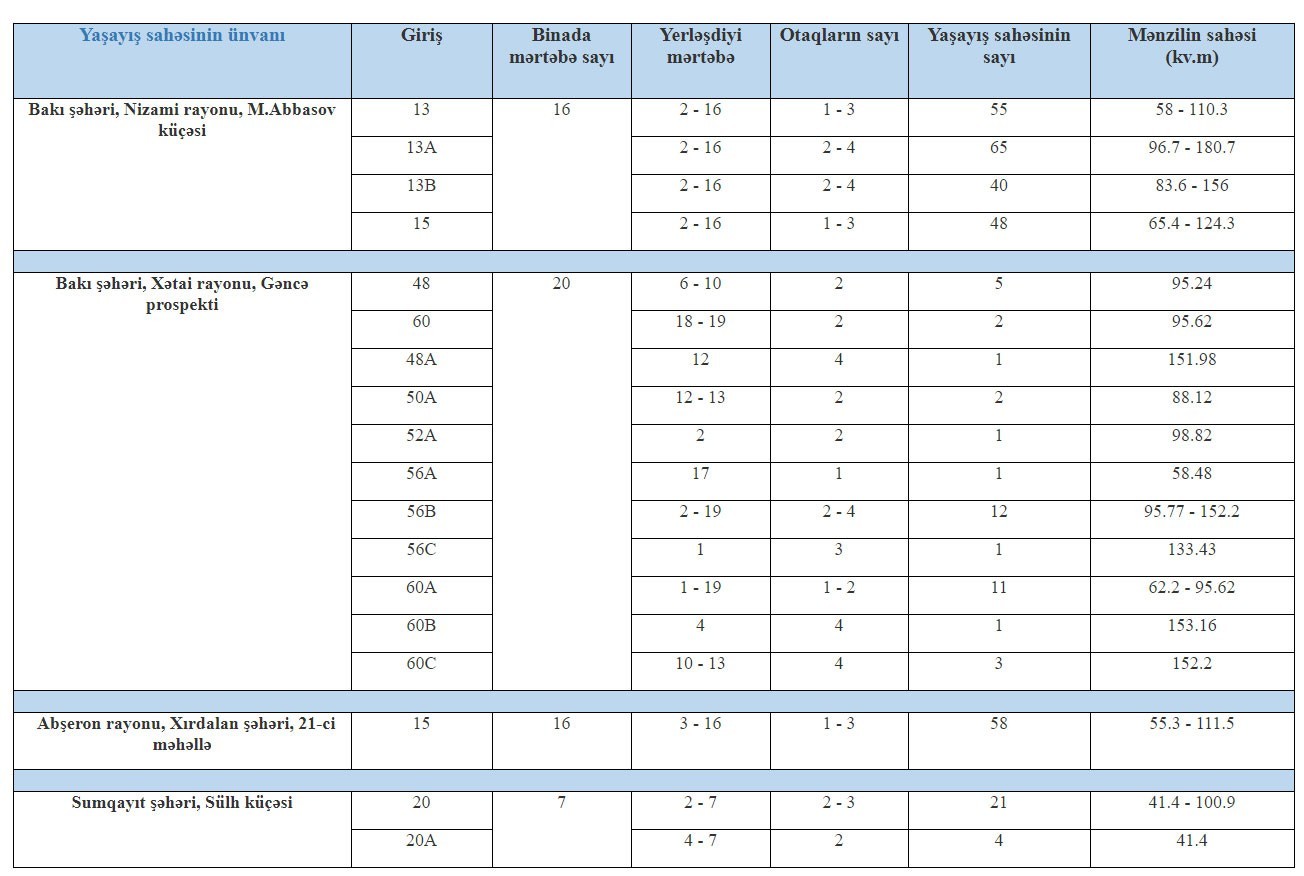 Kirayə üçün 208 mənzil 1 şirkətdən alınıb