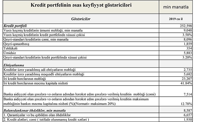 Qısası, ötən il Bankın 23 milyon 998 min manat cəmi gəlirlərinə qarşı cəmi xərcləri 24 milyon 413 min manat təşkil edib. Əvvəlki dövrlərdə aktivlər üzrə mümkün zərərlərin ödənilməsi üçün yaradılmış xüsusi ehtiyatdan 1 milyon 764 min manatın azad olması xərclərin gəlirləri 415 min manat üstələməsini bağlayıb və nəticədə Bank ötən ili 1 milyon 350 min manat xalis mənfəət ilə başa vurub. Yaradılmış ehtiyatın azad olması Bankın gecikmədə olan kreditlərinin azaldığına işarədir.