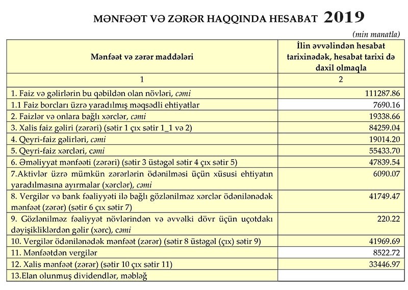 3-cü böyük özəl bankdan 33 milyon manatdan çox xalis mənfəət