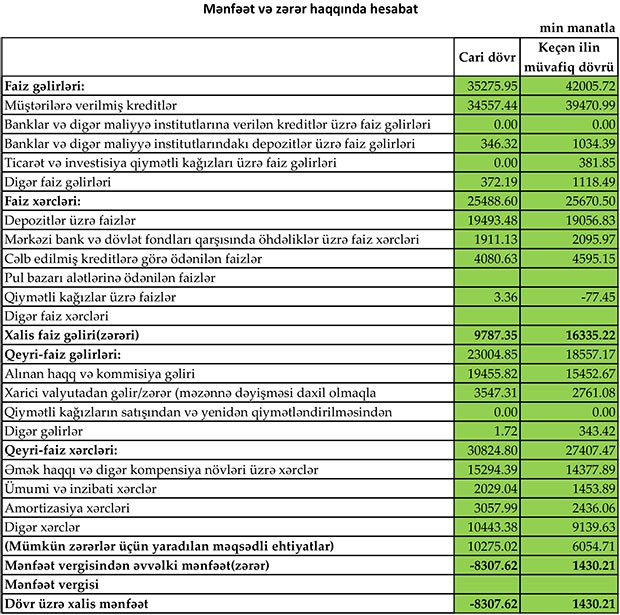 Müqayisə üçün qeyd edək ki, 2018-ci ildə “MuğanBank”ın cəmi gəlirləri 60 milyon 563 min manat, cəmi xərcləri 53 milyon 77 min manat, əməliyyat mənfəəti 7 milyon 486 min manat, ehtiyata ayırma 6 milyon 55 min manat təşkil etmişdi. Bank həmin ili 1 milyon 430 min manat xalis mənfəət ilə bağlamışdı.