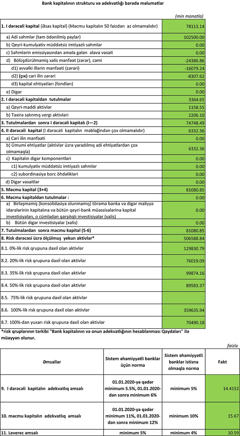 31 Dekabr 2019-cu il tarixində “Muğanbank” 81 milyon 80 min manat məcmu kapitala malik olub.