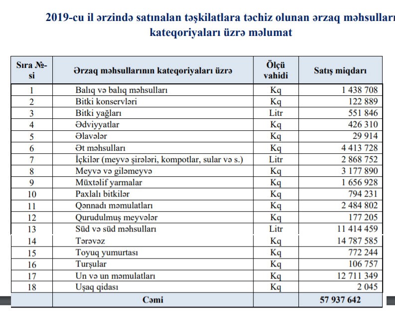 Dövlət şirkəti bazardan 60 min tona yaxın әrzaq mәhsulları alıb - SİYAHI