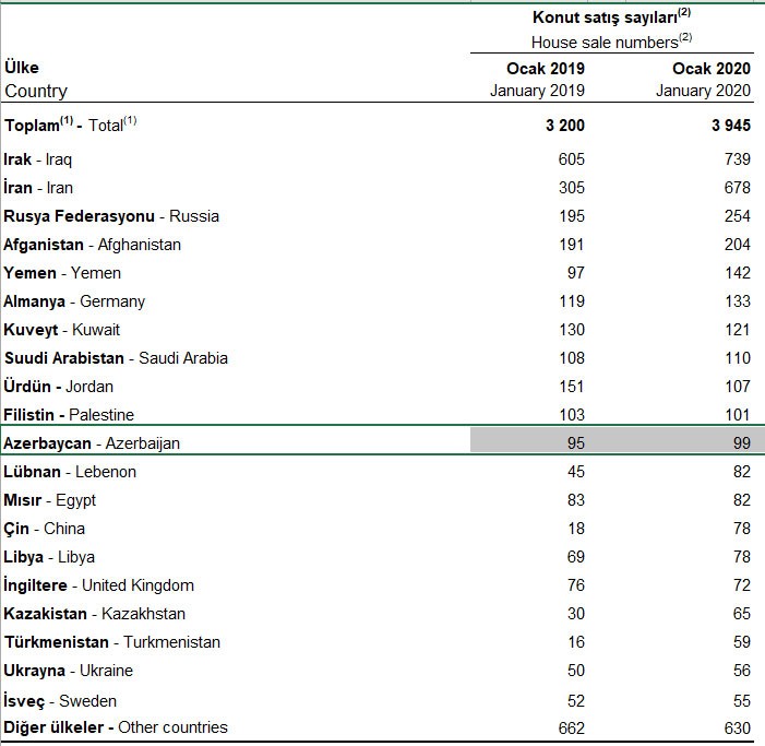Ötən ay Türkiyədə ən çox mənzili İraq, İran və Rusiya vətəndaşları alıblar.