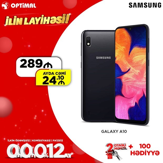- Samsung Galaxy A10 modelinə ayda 24.10 azn,