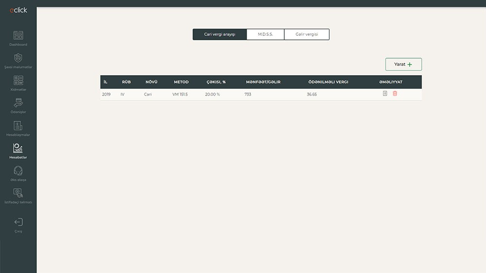 - Cəmi 1 klikə dövlət orqanlarına təqdim edilməli hesabatların avtomatik tərtib olunması