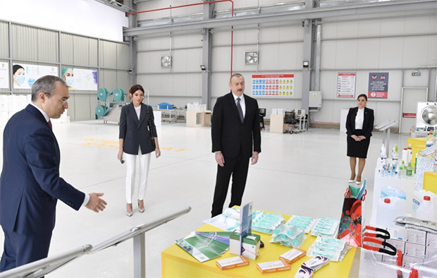 Azərbaycan Respublikasının Prezidenti İlham Əliyev və birinci xanım Mehriban Əliyeva aprelin 6-da Sumqayıt Kimya Sənaye Parkında “Bakı Tekstil Fabriki” MMC tərəfindən yaradılan tibbi maska istehsalı müəssisəsinin açılışında iştirak ediblər.