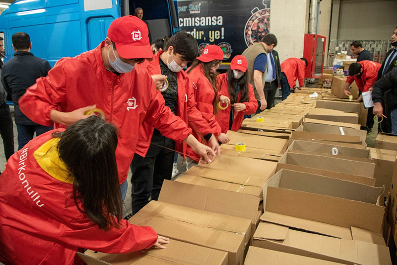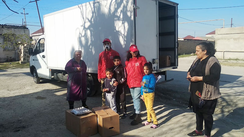 Ərzaqların ailələr və bölgələr üzrə paylanmasında Təhsil Nazirliyinin "Bir könüllü" proqramının könüllüləri yardım göstəriblər.