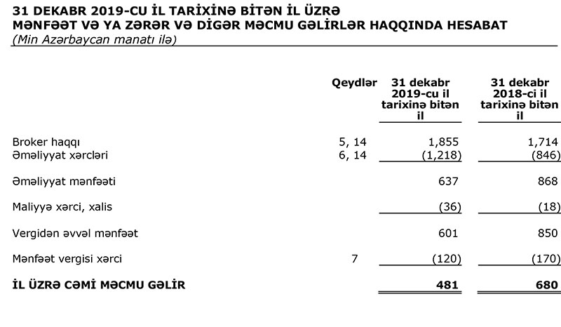 Gəlirin artmasına baxmayaraq illik müqayisədə əməliyyat xərclərinin 846 min manatdan 1 milyon 218 min manata yüksəlməsi əməliyyat mənfəətinin və yekunda da xalis mənfəətin azalmasına səbəb olub.