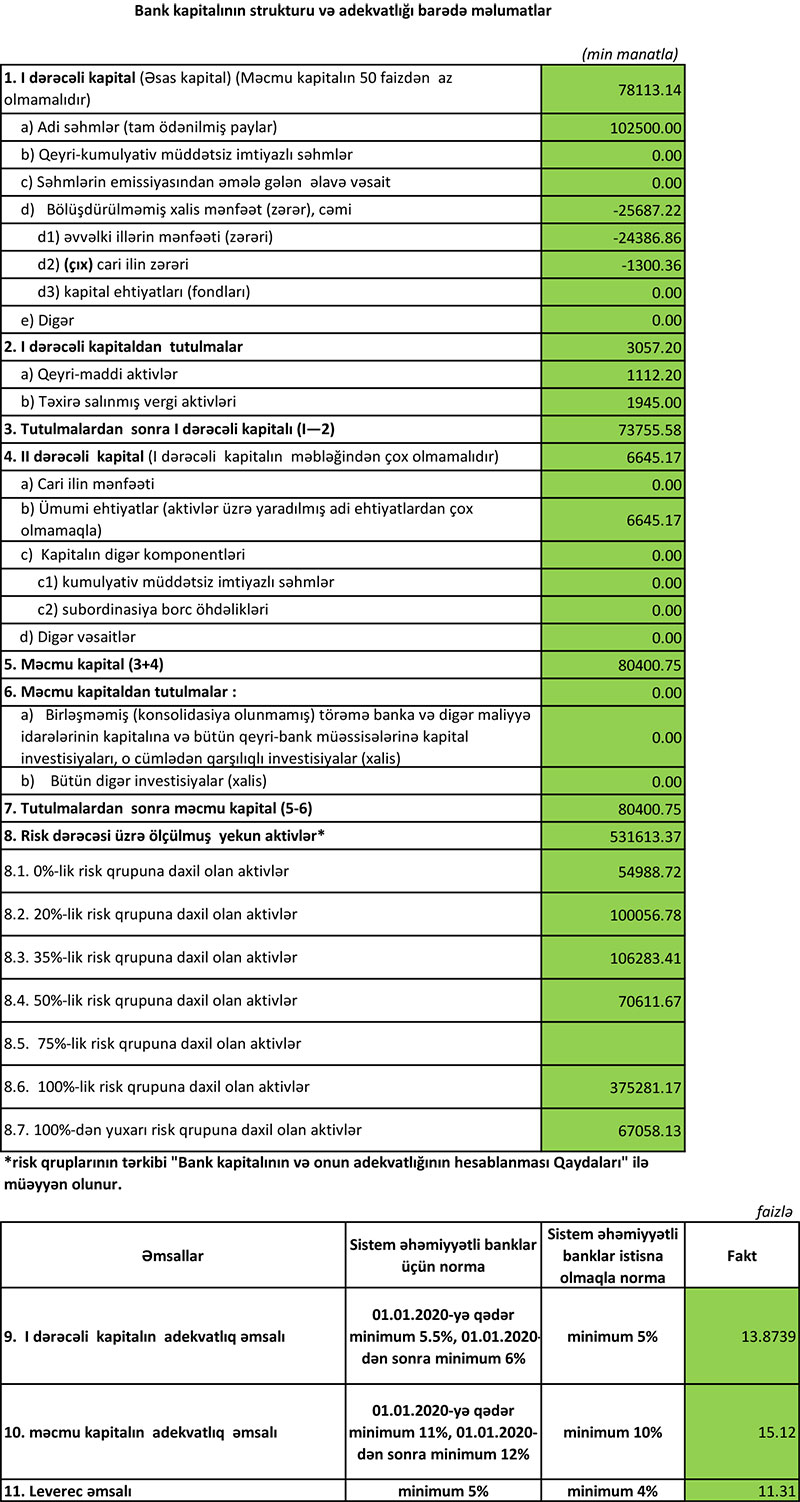 31 Mart 2020-ci il tarixində Muğanbank 80 milyon 400 min manat məcmu kapitala malik olub.