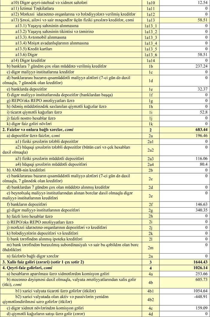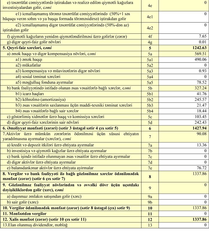 “Marja” Bankın hesabatlarına istinadən xəbər verir ki, yanvar-mart aylarında Bankın cəmi gəlirləri 3 milyon 354 min manat təşkil edib. Faiz və qeyri-faiz xərcləri çıxıldıqdan sonra Bankın 1 milyon 428 min manat əməliyyat mənfəəti qalıb. 90.08 min manat aktivlər üzrə mümkün zərərlərin ödənilməsi üçün xüsusi ehtiyatın yaradılmasına ayırıldığından Bankın xalis mənfəti 1 milyon 337.86 min manat təşkil edib.
