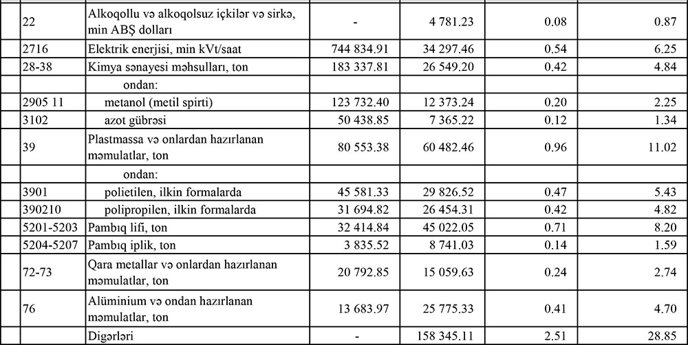 Azərbaycanın ən çox ixrac və idxal etdiyi mallar