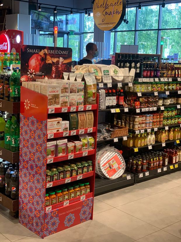 Azərbaycanın Mərkəzi Avropa ölkələri üzrə ticarət nümayəndəsinin təşəbbüsü, aparılan danışıqlar və bazar araşdırmalarının nəticəsi olaraq, Polşanın Varşava şəhərindəki 3 “Carrefour” supermarketində və Kielçe şəhərindəki “Carrefour” supermarketində “Made in Azerbaijan” stendləri yerləşdirilib.