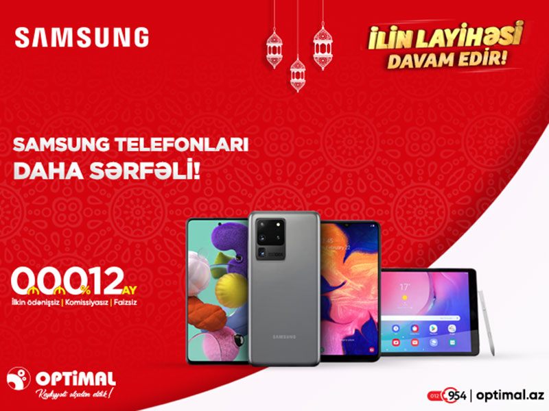 (®️) Ramazan ayı boyunca Samsung mobil telefonlarını və planşetləri ilkin ödənişsiz, faizsiz, komissiyasız 12 aylıq sərfəli kredit şərtləriylə, heç bir əlavə ödəniş etmədən Optimal mağazalarından əldə edəbilərsiniz.