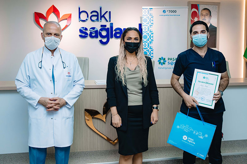 PAŞA Sığorta şirkətinin nümayəndələri səhiyyə işçilərinin peşə bayramı münasibətilə təltif etmək və bu çətin zamanda gecə-gündüz, bayram-tətil demədən öz həyatını fəda edərək xalqımızın sağlam olması üçün əllərindən gələni əsirgəməməyən tibb işçilərinə təşəkkür etmək məqsədi ilə Bakı Sağlamlıq Mərkəzinin tibbi heyəti ilə görüş keçirib. BSM-də də böyük bir tibbi heyət koronavirusla mübarizəyə səfərbər olunmuşdur.