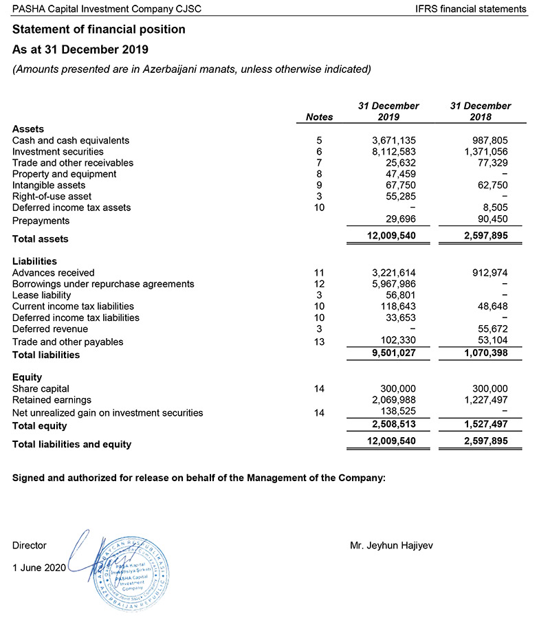 “PAŞA Kapital İnvestisiya Şirkəti” QSC 2019-cu ili 842 min manat xalis mənfəətlə başa vurub.