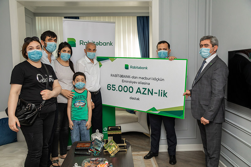 Doğma yurdlarından didərgin düşmüş qaçqın və məcburi köçkünlərə qayğı göstərilməsini daim diqqət mərkəzində saxlayan “Rabitəbank” 29 iyunda Məmmədəmin Rəsulzadə qəsəbəsində məskunlaşmış doqquz nəfər üzvü olan Emiralıyev ailəsini sevindirdi. İllərdir, ev arzusunda olan Emiraliyevlər ailəsinə mənzil şəraitinin yaxşılaşdırılması məqsədilə “Rabitəbank” tərəfindən ailəyə 65.000 AZN birdəfəlik maliyyə yardımı göstərildi. Zəngilan rayonunun Məmmədbəyli kəndindən olan böyük ailənin başçısı Emiralıyev Bilal Xanı oğlu “Rabitəbank”a bu təşəbbüsə görə minnətdarlığını bildirmiş, bu addımın nümunəvi mənəvi hərəkət olduğunu vurğulaşmışdır: “Böyükdən kiçiyə qədər, hər bir ailə üzvümüzün adından “Rabitəbank”a sonsuz təşəkkürümüzü bildiririk, bizi unutmadıqları üçün və səxavətliliyə görə çox sağ olun.”