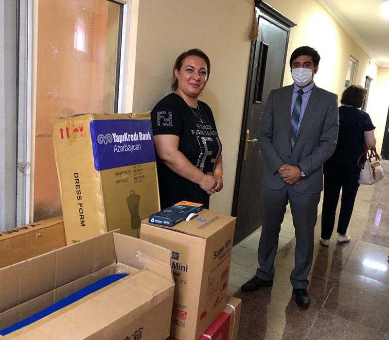 (®️) Həssas əhali qruplarının özünüməşğulluğunun təşkilinə dəstək vermək məqsədi ilə Yapı Kredi Bank Azərbaycan cari ilin iyun ayının 30-da Sumqayıt şəhərində öz dərzi atelyesini qurması üçün 2 xanıma lazım olan avadanlıqları təqdim etmişdir.