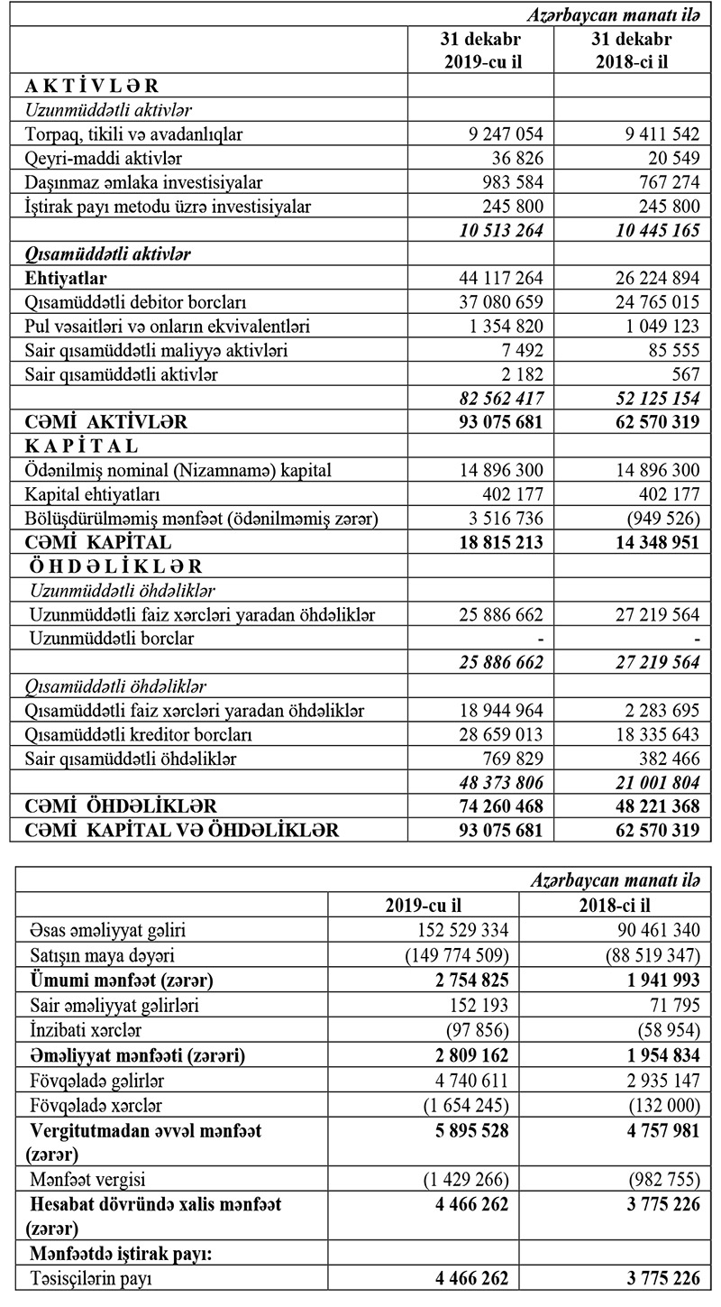 31 Dekabr 2019-cu il tarixinə "Baku Electronics" MMC-nin balans hesabatı