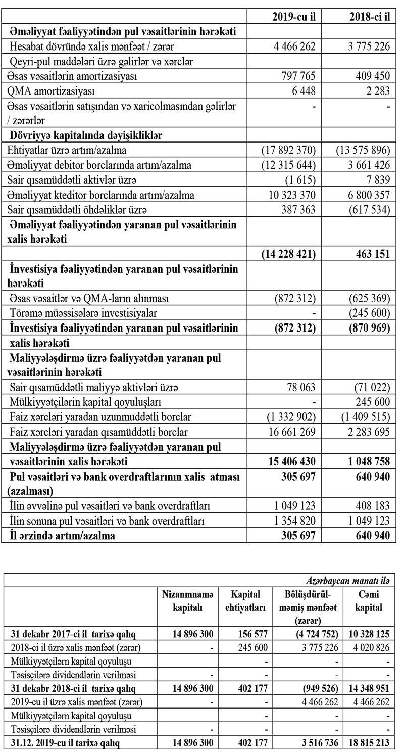 Ötən ilin mənfəəti hesabına şirkətin cəmi kapitalı 31,1% artaraq 18 milyon 815 min manat yüksəlib.
