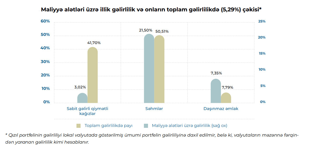 - 25% - səhm (maksimum 5 faizə qədəri səhmlərə və kredit reytinqinə malik olmayan borc öhdəliklərinə investisiya qoyan pay fondları olmaqla);