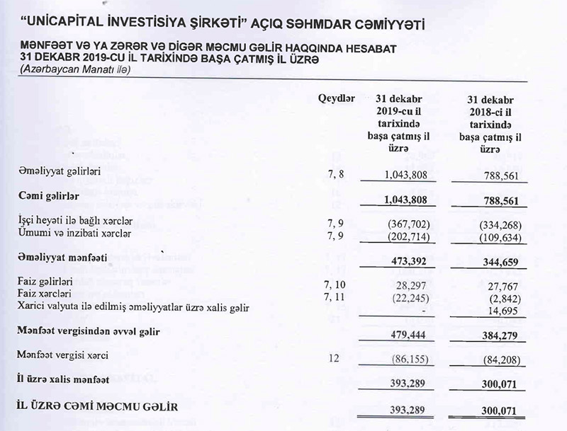 “Unicapital” İnvestisiya Şirkəti 2019-cu ilin maliyyə nəticələrini açıqlayıb.