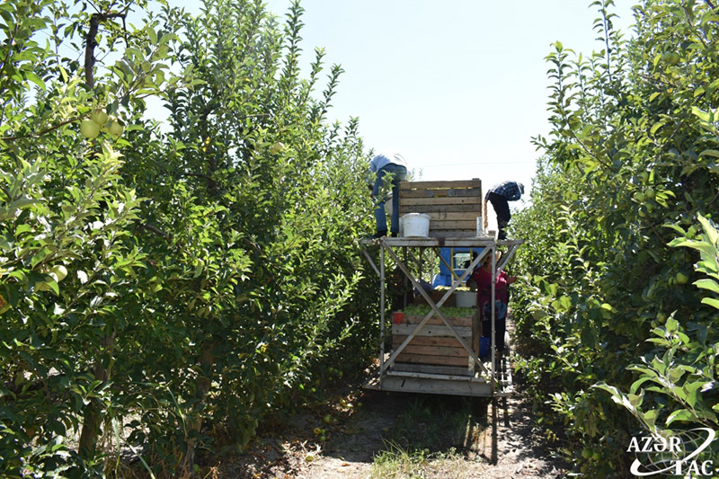Bağların ilk məhsulu avqust ayında toplanılıb. Tezyetişən “Royal qala” sortlardan bol məhsul əldə olunub. Hazırda isə “Golden”, “Jonagold”, “Granny Smith” sortlarının becərildiyi bağların məhsulu toplanılır.