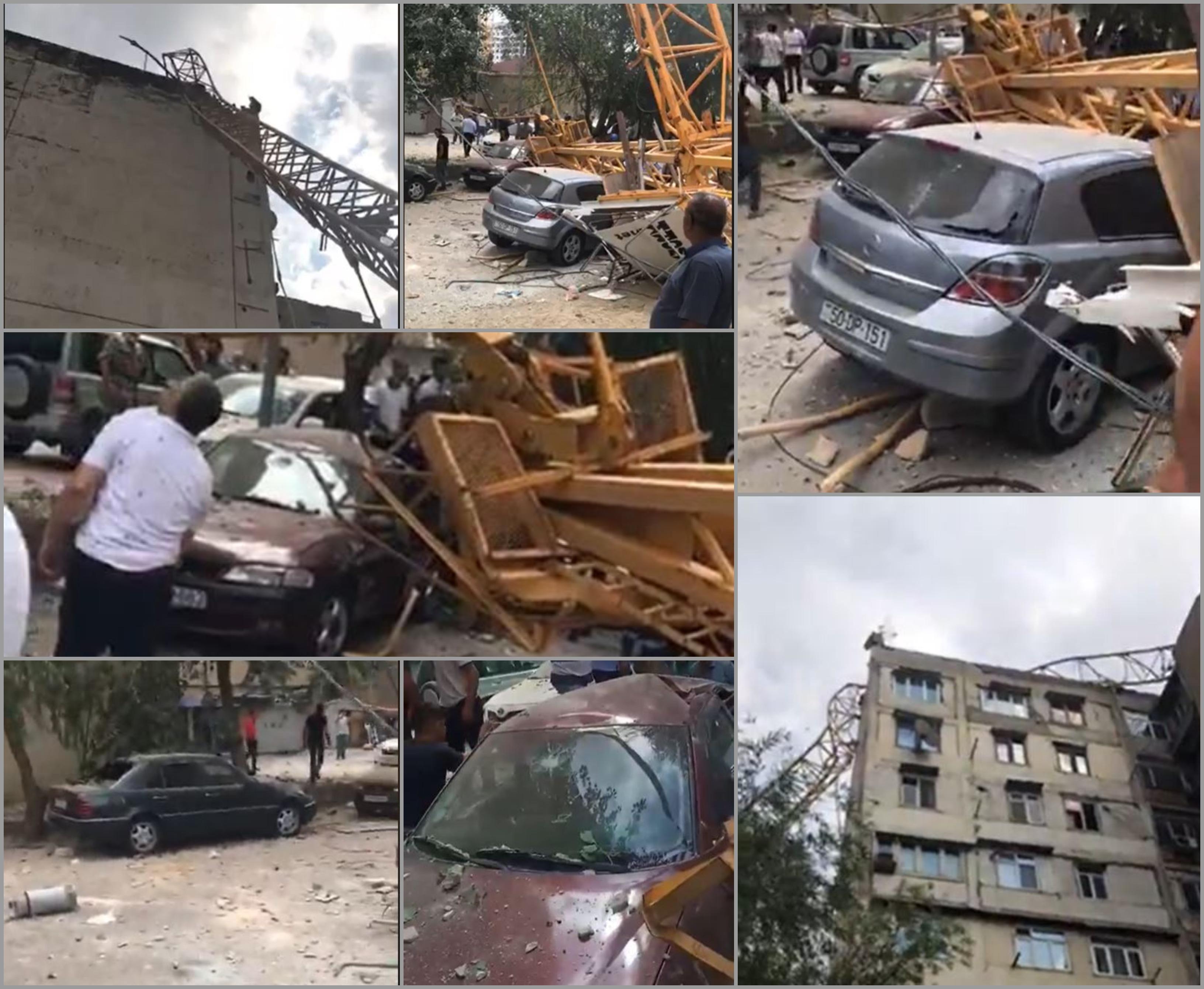 Məlumata görə, kranın aşması nəticəsində ərazidə olan 6 avtomobilə ciddi ziyan dəyib.