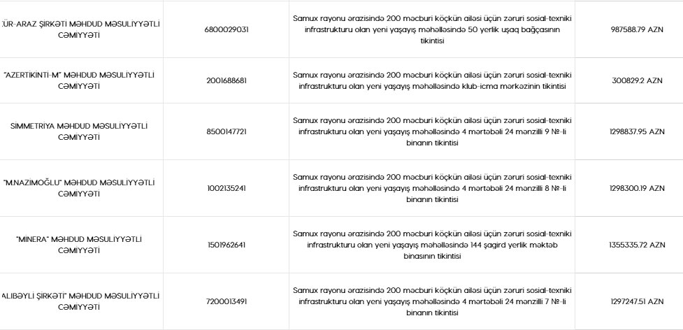 Yaşayış məhəlləsinin tikintisinə aşağıdakı şirkətlər cəlb edilib: