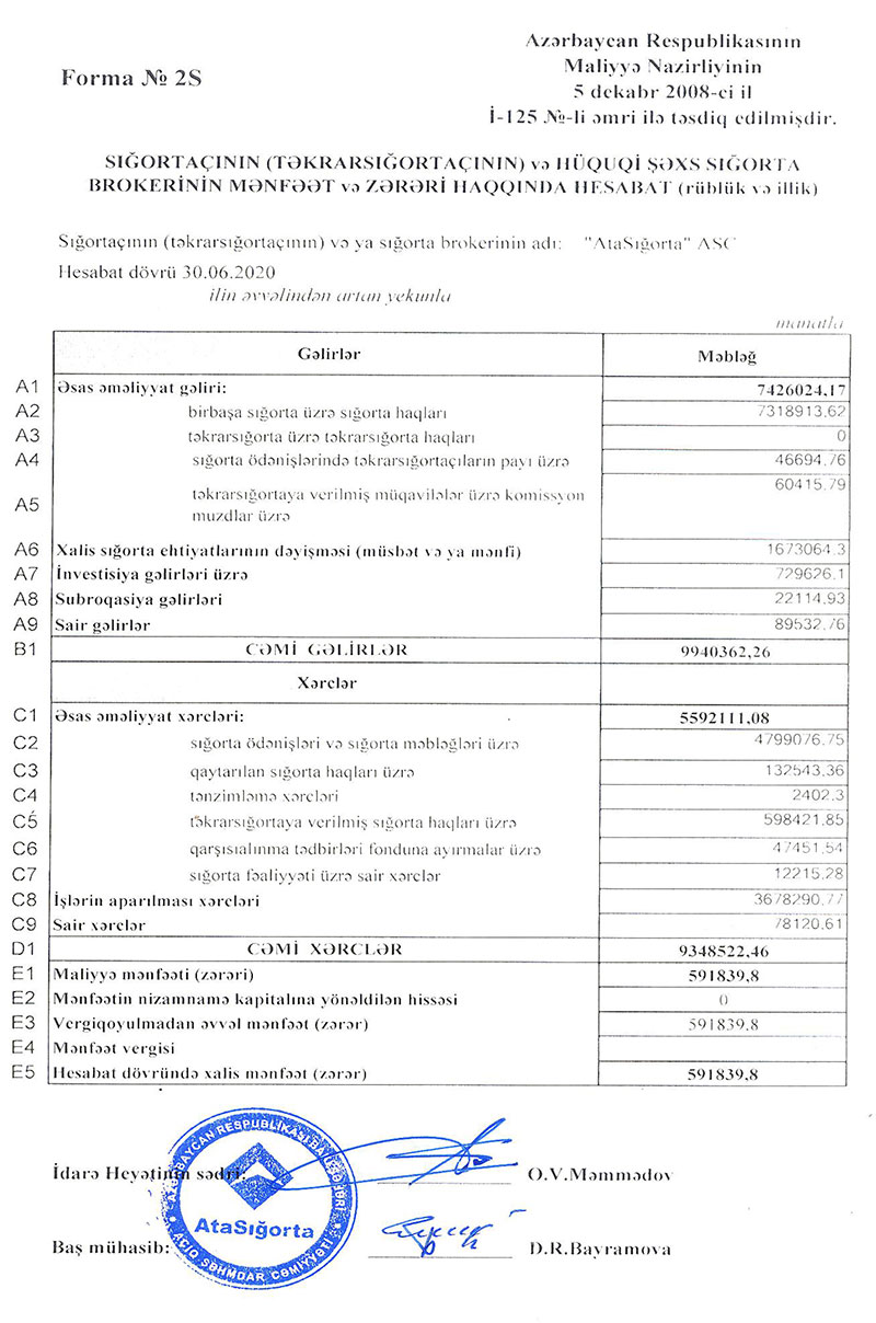Marja “AtaSığorta”nın yarımillik hesabatına istinadən xəbər verir ki, 2020-ci ilin ilk 6 ayında cəmi gəlirlər 9 milyon 940 min manat, cəmi xərclər isə 9 milyon 348 min manat təşkil edib. 2019-cu ilin eyni dövründə cəmi gəlirlər 14 milyon 27 min manat, cəmi xərclər isə 12 milyon 914 min manat olmuşdu.