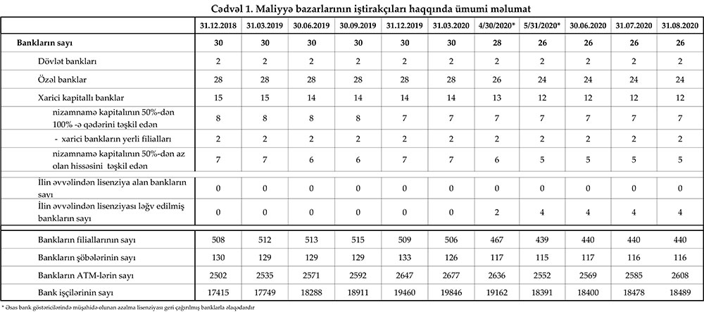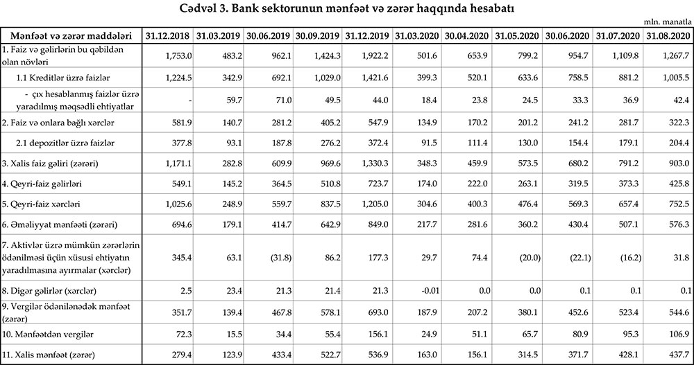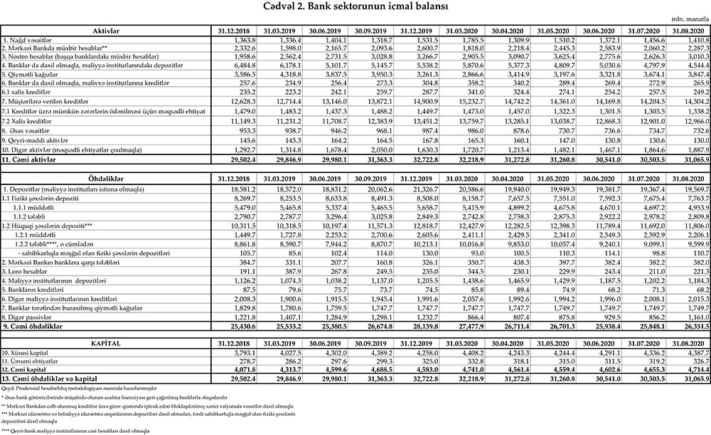 31 avqust 2020-ci il tarixinə olan bank sektorunun əsas göstəriciləri açıqlanıb.
