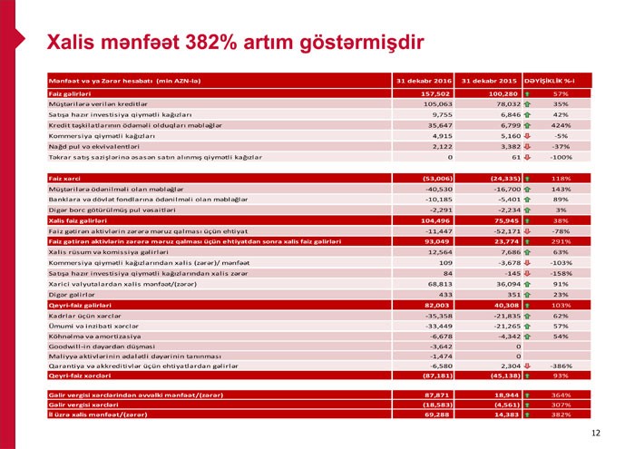 Bildirilib ki, bazarda yeni çağırışların olduğu bir dövrdə bankın maliyyə göstəricilərindəki güclü artımlar, Bank son bir neçə il ərzində formalaşdırdığı münasibətlərin bəhrəsidir.