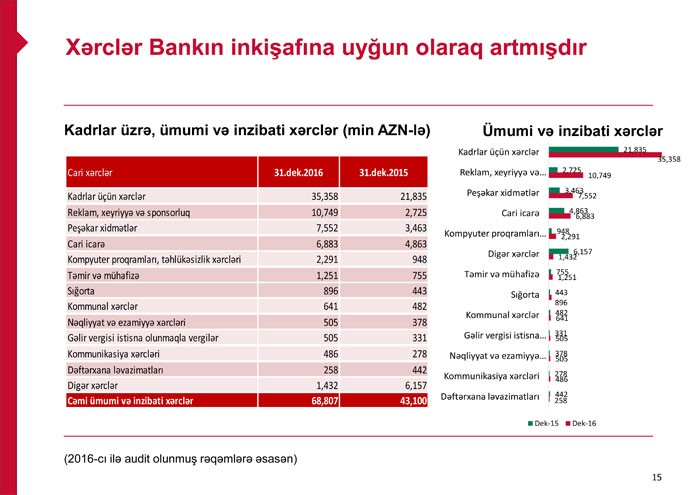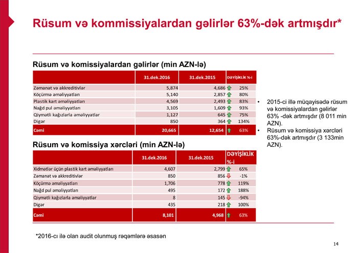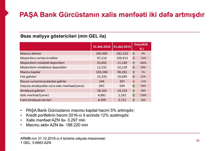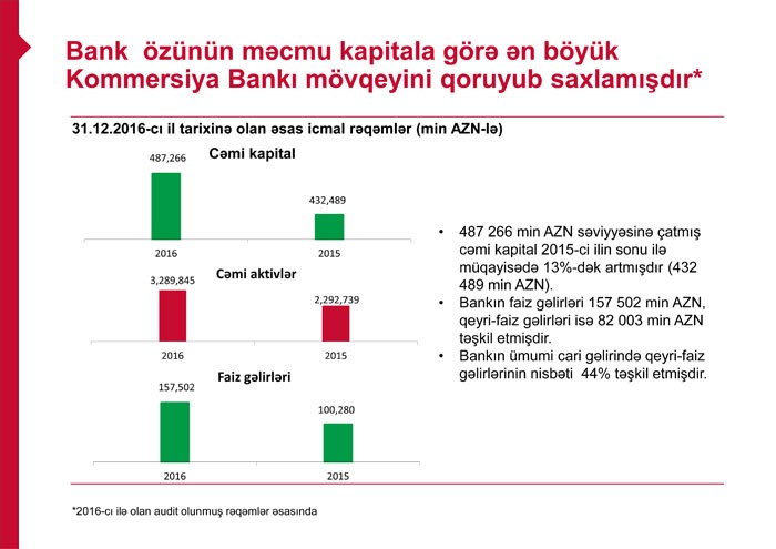 Bütün rəqəmlər 31 dekabr 2016-cı il tarixinə verilmişdir və birləşdirilmiş audit edilmiş maliyyə hesabatlarına əsaslanır.