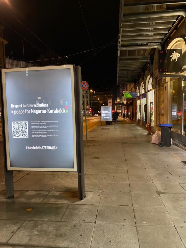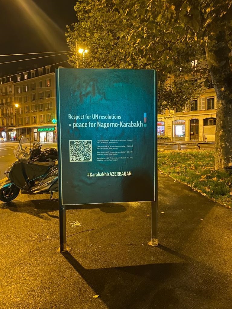 İsveçrənin Cenevrə şəhərində Dağlıq Qarabağ ilə bağlı bilbordlar sərgilənib.
