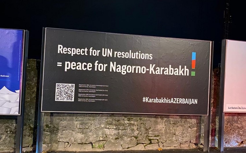 Üzərində BMT Təhlükəsizlik Şurasının Dağlıq Qarabağ ilə bağlı 4 qətnaməsini əks etdirən bilbordlar bütün şəhər boyu asılıb.