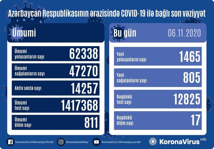 Qeyd edək ki, 05 Noyabrda 1364 yoluxma faktı qeydə alındığı açıqlanmışdı.