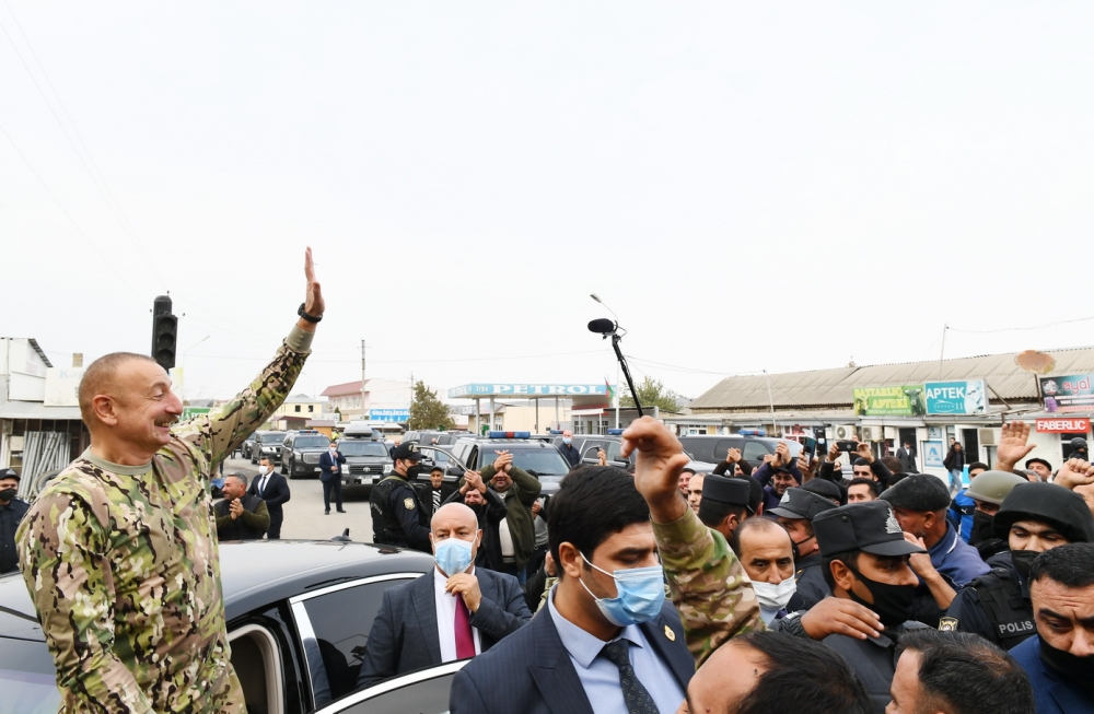 - Füzuli şəhəri işğalçılardan azad edilib. Füzuli şəhərində Azərbaycan bayrağı qaldırılıb. Biz Füzuliyə qayıtmışıq. Ancaq indi yol boyunca dağıdılmış kəndləri və Füzuli şəhərini dağılmış vəziyyətdə görəndə adamın ürəyi ağrıyır. Vəhşilər bizim şəhərimizi nə günə salıblar?! Dağıdıblar, evləri dağıdıblar, bütün infrastrukturu dağıdıblar, bir dənə də salamat bina yoxdur. Bütün dünya görməlidir erməni vəhşiliyi nə deməkdir və bütün dünyaya biz bunu göstərəcəyik. Təkcə Füzuli yox, Ağdam şəhəri nə gündədir, başqa şəhərlər. Sanki bu torpaqlardan bir vəhşi qəbilə keçib. Hər şeyi dağıdıb, talan edib, bizim mədəni, tarixi, dini irsimizi silmək istəyib, ancaq istədiyinə nail ola bilməyib. Çünki biz gəlməli idik, qayıtmalı idik. Gəlmişik və qayıtmışıq. Düşməni qovmuşuq torpaqlarımızdan, Azərbaycanın Dövlət Bayrağını ucaltmışıq. Bundan sonra bu torpaqda biz yaşayacağıq, necə ki, əsrlərboyu biz yaşamışıq, bizim xalqımız yaşayıb.