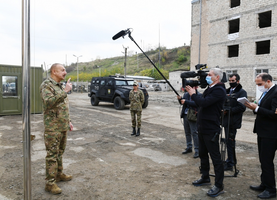 Prezident İlham Əliyev: Cəbrayıl şəhərinə giririk. Düşmən burada özü üçün hərbi hissələr yaradıb. Şəhərdə hərbi hissələrdən başqa bir şey yoxdur.
