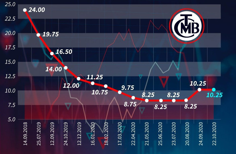 Hazırda TCMB-nin əsas faizi 10.25%-dir.