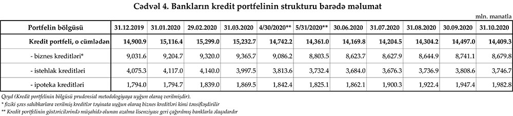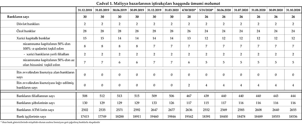 30 oktyabr 2020-ci il tarixinə olan bank sektorunun əsas göstəriciləri açıqlanıb.