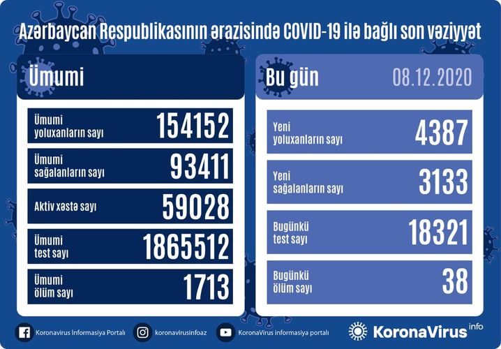 Qeyd edək ki, 07 Dekabr 2020-ci il tarixində isə son gün ərzində 3086 yoluxma faktı qeydə alındığı açıqlanmışdı.